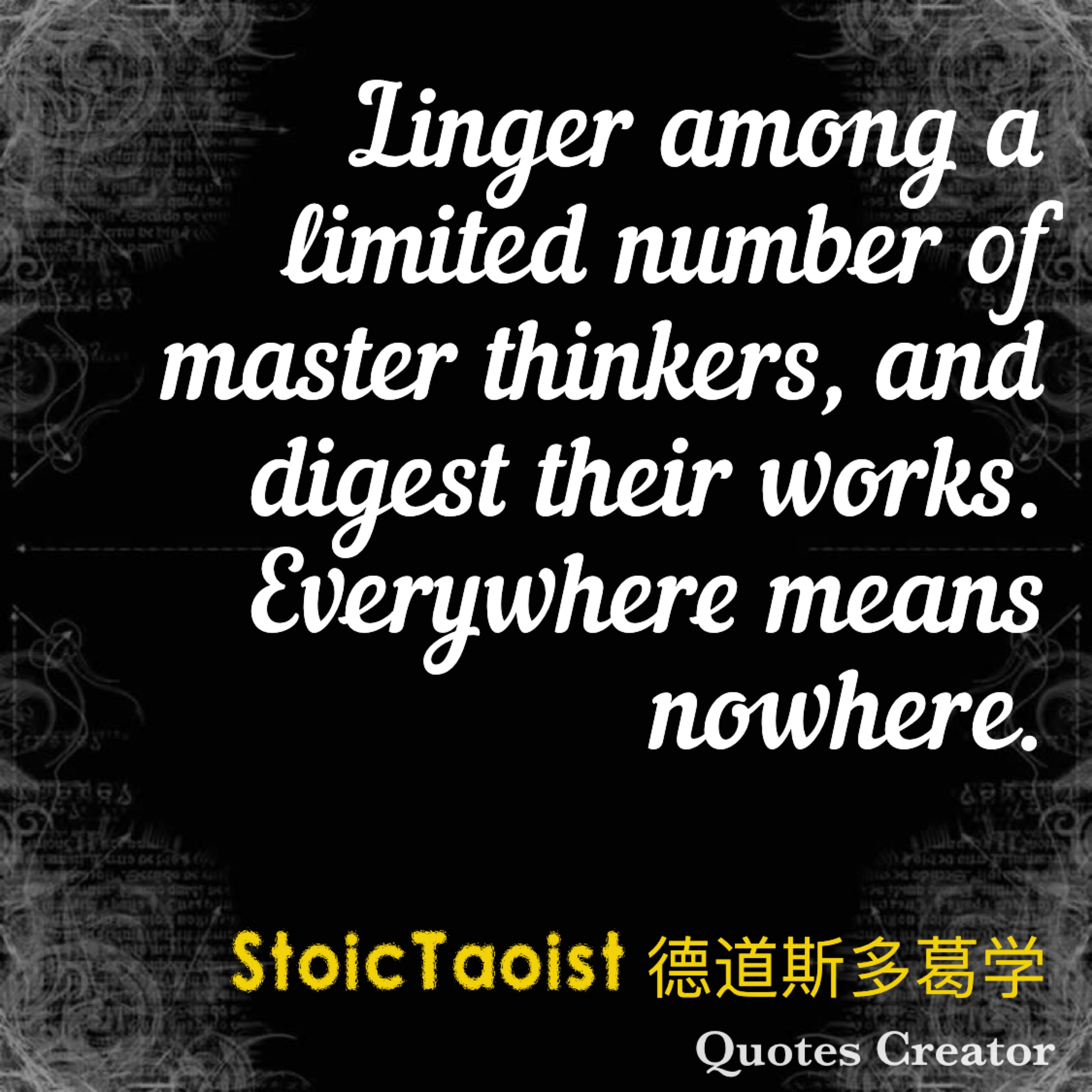 Linger among a limited number of master thinkers, and digest their works. Everywhere means nowhere.