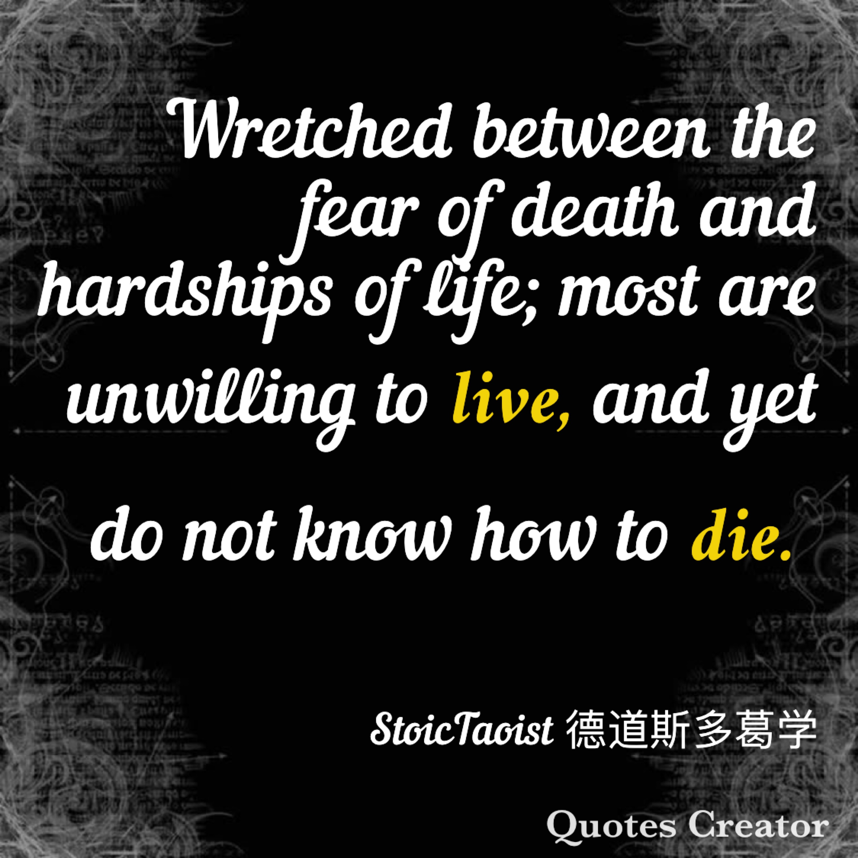 Wretched between the fear of death and hardships of life; most are unwilling to live, and yet do not know how to die.