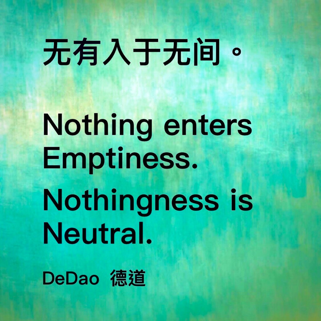 无。Nothingness February 25, 2020February 25, 2020 / StoicTaoist (Always Be Confident) 无有入于无间。Nothing enters Emptiness.Nothingness is Neutral. #nothingness is to let nature flow, unbridled, unconstrained, to be free. Share this: Click to share on X (Opens in new window) X Click to share on WhatsApp (Opens in new window) WhatsApp Click to share on Facebook (Opens in new window) Facebook Click to share on Pocket (Opens in new window) Pocket Click to email a link to a friend (Opens in new window) Email Click to share on LinkedIn (Opens in new window) LinkedIn Click to share on Telegram (Opens in new window) Telegram More Click to share on Reddit (Opens in new window) Reddit Click to share on Tumblr (Opens in new window) Tumblr Click to share on Pinterest (Opens in new window) Pinterest Like Loading... Related